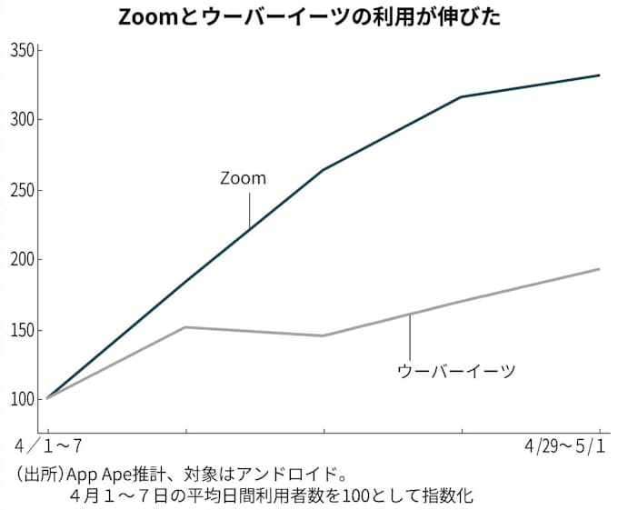 外出自粛のgw 家ナカ消費活発 Zoomとウーバーイーツ躍進 日本経済新聞