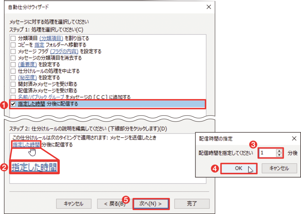 メールを1分後に送信するには 送信メッセージにルールを適用 Outlook 10 初心者のためのoffice講座